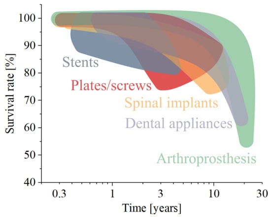 While titanium alloys’ preeminence in the field of orthopedics and dentistry has long been established, the combination of mechanical strength and biocompatibility promoted the use of titanium and titanium alloys in other fields of medicine, such as in cardiovascular devices. Titanium can be used as the main component of stents, heart valves, and vascular grafts, as well as parts of implantable defibrillators, pacemaker cases, and implantable sensors. Apart from biocompatibility, the most important requisite for cardiovascular implants is to be reliable over time, meaning that they are supposed to function without revision for long time spans. The revision of cardiovascular implants carries additional risks and, unlike most arthroprosthetic or dental devices, the mechanical malfunction of a cardiovascular device is life-threatening [].