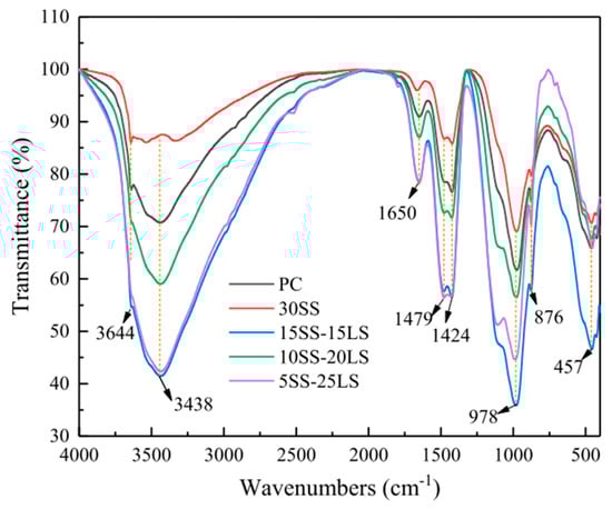 To gain insight into the potential applications of LS and to enhance its utilization efficiency, it is imperative to comprehensively understand the physicochemical properties inherent to LS itself. Presently, numerous studies have embarked on an exploration of the physicochemical properties of LS. Research has demonstrated that particle size, chemical composition, and amorphous content (silica and alumina) are key determinants of the pozzolanic activity exhibited by noncrystalline materials [40]. Therefore, investigations into the physical characteristics of LS encompass parameters such as the specific surface area (SSA) [14,41], specific gravity [33], density [42,43], moisture content [41], and particle size distribution [22,44]. In parallel, conventional analytical methods have been employed to scrutinize the chemical composition of LS, including X-ray diffraction (XRD) [23,44] and scanning electron microscopy with energy-dispersive spectroscopy (SEM/SEM-EDS) [44,45,46], as well as specialized techniques such as Fourier transform infrared spectroscopy (FTIR) [31,45], nuclear magnetic resonance (NMR) [30,47], X-ray photoelectron spectroscopy (XPS) [30], and thermogravimetry (TG)/thermogravimetric and derivative thermogravimetric analysis (TG-DTG) [19,43,48].