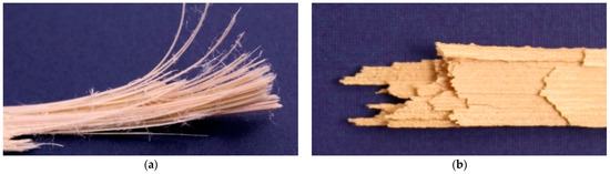 Exemplary pictures of fractured tensile testing samples are depicted in Figure 4. A fibrous material structure is very pronounced in the case of LCP-L (Figure 4a). The LCP-H (Figure 4b) shows a less pronounced fibrous structure compared to the LCP-L. However, higher printing temperatures generally lead to a diminishing fibrous structure for both LCP. A light microscope image of LCP-L can be found in Figure 5 with a printing temperature of 300 °C and 340 °C. The examined plane is perpendicular to the tensile direction and both samples were analyzed after tensile testing. The fracture results in a loss of cohesion both between strands within a layer (y direction) and from layer to layer (z direction). Nevertheless, a higher printing temperature results in less strand detachment compared to a lower printing temperature due to the improved welding behavior.