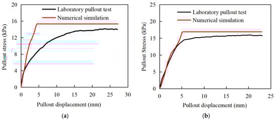 Comparison of peak pullout stress in laboratory and numerical simulation.