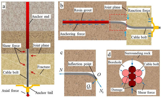 - Li, Y.Z.; Liu, C.H. An analytical model of jointed rock bolts under the combination of tensile and shear loads. China J. Rock Mech. Eng. 2016, 35, 2471–2478. [Google Scholar] [CrossRef]