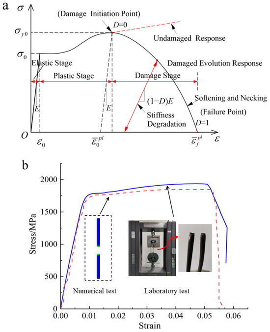 | Material Type | Density (kg/m3) | Poisson’s Ratio | Young’s Modulus (GPa) | Friction Angle (°) | Cohesion (MPa) | Yield Strength (MPa) | Peak Strength (MPa) | Peak Strain (%) |