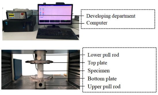 To comprehensively analyze the fatigue characteristics evolution of grouting materials in complex surrounding rock environments [22]. The grading and unloading test of variable loading times is carried out on the specimens of the best ratio of heat insulation grouting materials. Figure 4 shows the RDL-200 rock compression rheometer used in the test. For cyclic loading and unloading of cylinders with specimen sizes of Φ 50 mm × 100 mm, in the experiment, six different loading paths were designed, namely the uniaxial compression path and cyclic loading path, in which the number of cyclic loading times was divided into 1, 2, 4, 6, and 8 cycles. In uniaxial compression tests, a rate of 1 mm/min is used to load the test piece to failure. In the cyclic load-unload test, stress control was used. The loading rate and unloading rate were 0.2 MPa/s, and the lower limit of unloading stress was always maintained during the load-unloading process, and both were discharged to 0 MPa. The upper limit of the loading stress is different [23]. The first stage of cyclic loading stress is 2.17 MPa, which is about 50% of the monotonic loading strength, and the amplitude of each subsequent stress increase is set to 0.43 MPa until the sample damage test stops.