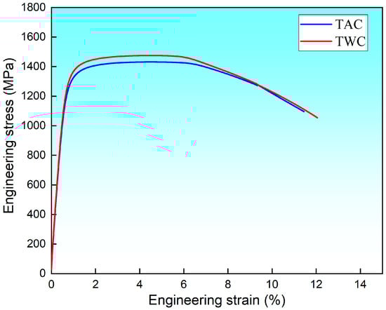 - The impact toughness is higher after tempering and water cooling compared to air-cooling tempering. The microstructure in both states consists of a mixture of martensite and bainite. In the air-cooled state, martensite plates exist in the form of long needles, while in the water-cooled state, the structure consists of uniformly distributed martensite plates. The reduction in bainite content during tempering and water cooling approaches the optimal ratio for martensite–bainite mixed structures, contributing to the enhanced toughness.