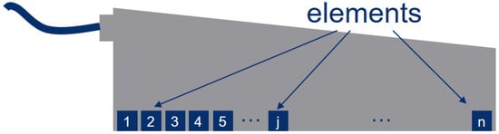 Phased array ultrasonic testing (PAUT) describes the use of ultrasonic probes, which are usually made up of 8 to 64 individual elements (Figure 1) [18,19]. Phase-controlled excitation of the individual elements enables electronic manipulation of the sound field in the form of angular scanning, focusing, or sequential perpendicular scanning.