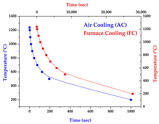 AC and FC cooling curves after homogenization at 1240 °C for 2 and 6 h.