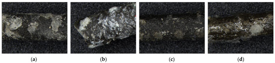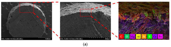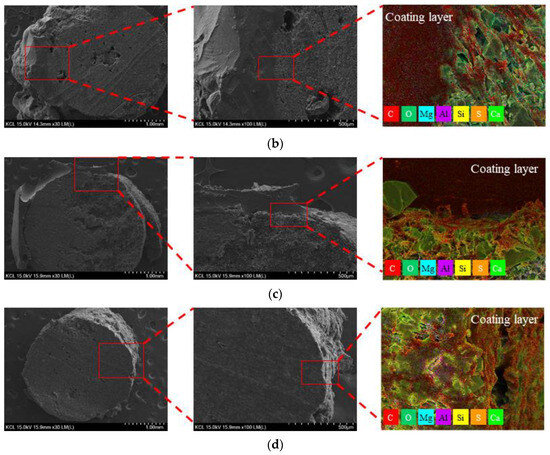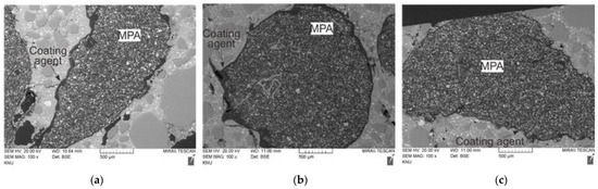 Meanwhile, as a result of analyzing the distribution of elements constituting MPAs and the coating agent at the boundary between the MPA and the coating agent through EDS analysis, it was found that most of the elements that make up the coating agents were carbon, as presented in Figure 6 and Table 7, because the coating agents were organic materials.