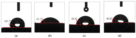 Table 6 shows the contact angles of the unmodified MPA and the surface-modified MPAs with two types of coating agents, and Figure 5 illustrates the average contact angles by six measurements for all MPA.