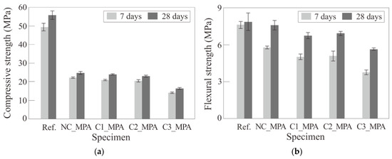 Strength by the surface modification of MPA: (a) compressive strength and (b) flexural strength.