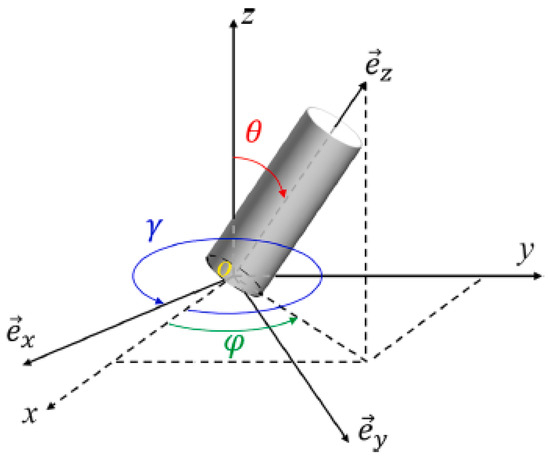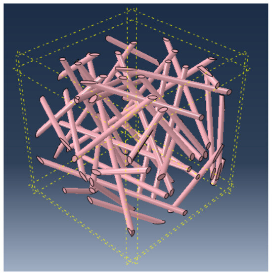 Figure 2 and Figure 3 show a cubic REV and a slice REV with randomly oriented fibers, respectively. Figure 4 illustrates the orientation of the fibers in the matrix, where e x , e y , and e z are the local unit vectors of the Cartesian coordinate system. They can be expressed using the spherical coordinates, as follows: