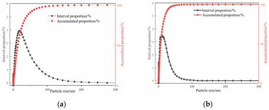Particle size distribution diagrams of (a) ZP and (b) GP.