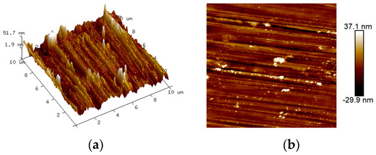 Firstly, the specimens were soaked in anhydrous ethanol for 48 h to terminate their hydration; then, the samples with terminated hydration were dried, and the samples were cold-set with epoxy resin. After the epoxy resin was cured, the samples were put into anhydrous ethanol for ultrasonic cleaning for 5 min; then the samples were analyzed by using an AFM of the model of (Bruker Dimension Icon, Karlsruhe, Germany) for the roughness analysis. The samples were then analyzed for roughness using an atomic force microscope (Bruker Dimension Icon, Germany).