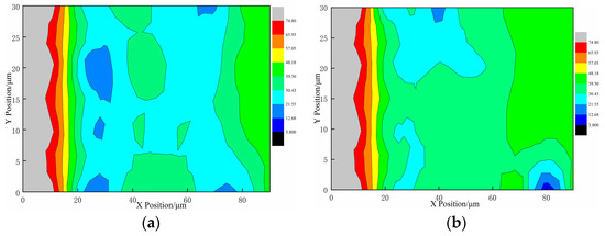 Analysis of elastic modulus contours for (a) WLCC-5-5 and (b) LCC-5-5. (a) Contour analysis diagram of LCC-5-5; (b) contour analysis diagram of WLCC-5-5.