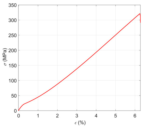 The determined properties of the laminate are provided in Table 1 below. Figure 1 depicts the laminate’s representative stress–strain curve (σ(ε)).