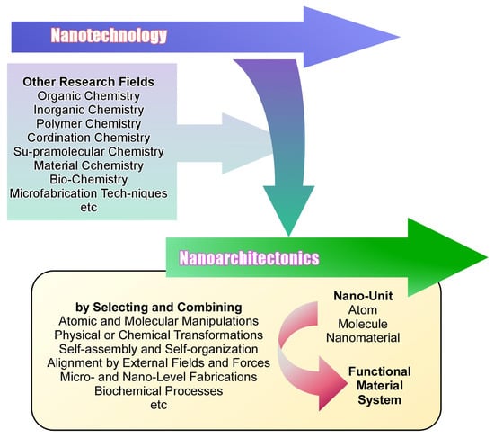- Ariga, K. Materials nanoarchitectonics in a two-dimensional world within a nanoscale distance from the liquid phase. Nanoscale 2022, 14, 10610–10629. [Google Scholar] [CrossRef]