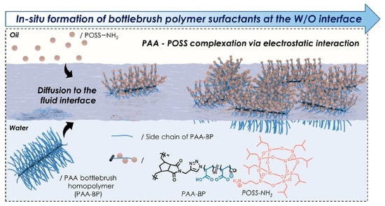 - Seong, H.-G.; Fink, Z.; Chen, Z.; Emrick, T.; Russell, T.P. Bottlebrush polymers at liquid interfaces: Assembly dynamics, mechanical properties, and all-liquid printed constructs. ACS Nano 2023, 17, 14731–14741. [Google Scholar] [CrossRef] [PubMed]