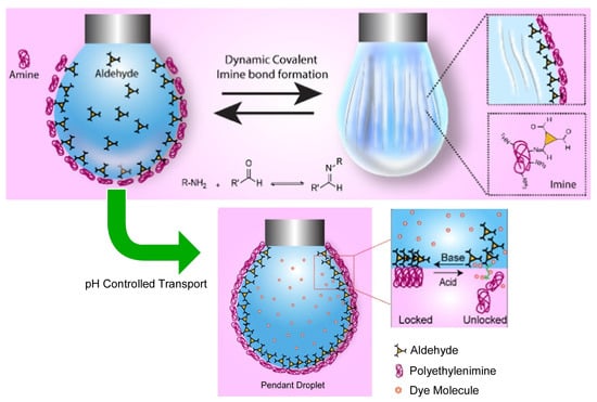 - Agashe, C.; Varshney, R.; Sangwan, R.; Gill, A.K.; Alam, M.; Patra, D. Anisotropic compartmentalization of the liquid–liquid interface using dynamic imine chemistry. Langmuir 2022, 38, 8296–8303. [Google Scholar] [CrossRef] [PubMed]