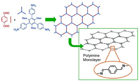 - Dai, W.; Shao, F.; Szczerbiński, J.; McCaffrey, R.; Zenobi, R.; Jin, Y.; Schlüter, A.D.; Zhang, W. Synthesis of a two-dimensional covalent organic monolayer through dynamic imine chemistry at the air/water interface. Angew. Chem. Int. Ed. 2016, 55, 213–217. [Google Scholar] [CrossRef] [PubMed]