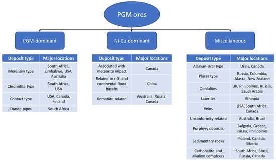 Figure 2. PGMs ore deposits’ classifications, based on [22].