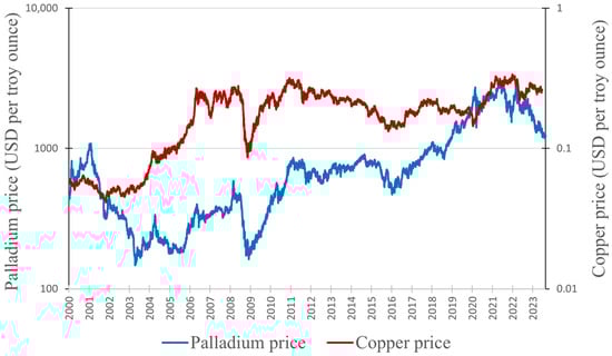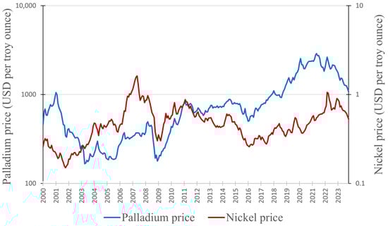 99. Macrotrends—Palladium Prices. Available online: https://www.macrotrends.net/2542/palladium-prices-historical-chart-data (accessed on 27 August 2023).