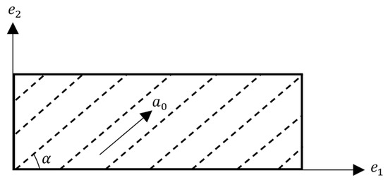where denotes the initial angle between the fiber direction and the first axis of reference configuration, , as shown in Figure 1. In the same way, it is possible to define two additional invariants (, ) with corresponding unit vectors for materials consisting of two families of fibers.