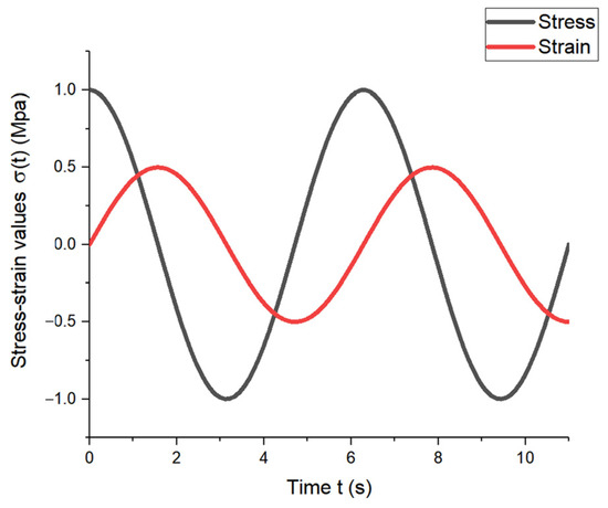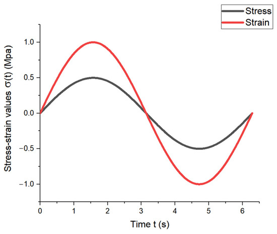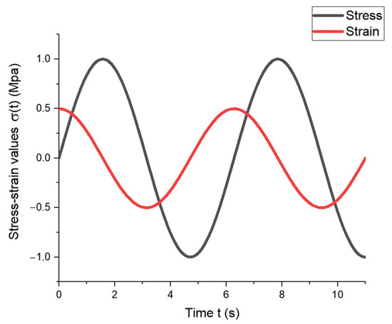 When an elastic material was subjected to sine or cosine stress, the strain and stress changed with the same phase position and amplitude value in the same direction as the sine or cosine, as shown in Figure 4.