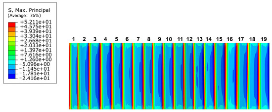 Shear strength calibration was carried out for involute splines fabricated using the PEEK-based material. For solid shafts, if the coupling teeth were less than one-third of the pitch diameter and the minimum diameter of the shaft was the root diameter of the coupling, the shear capacity of the shaft exceeded the shear capacity of the teeth, i.e., the maximum shear strength of the shaft was greater than the shear strength of the teeth. Before calibrating this strength, the break-away stress, S1, caused by the radial component of the diagonal force was calculated, drawing bending stress, S2, and the circumferential stress caused by circumferential stress, S3, as follows:
