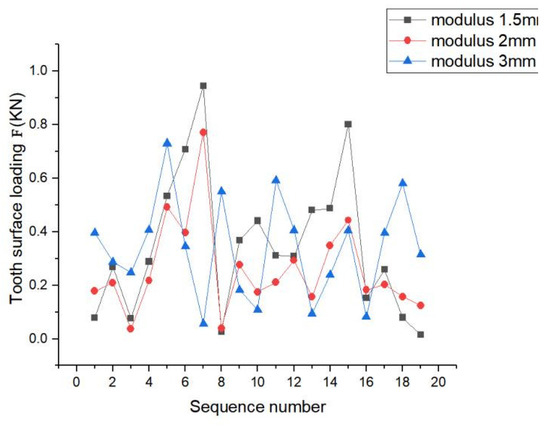 where h is the working height of the key teeth (mm). According to Figure 1, if the working height of the key teeth cannot be determined by the following chart, it takes h = m (α = 30°) [28].