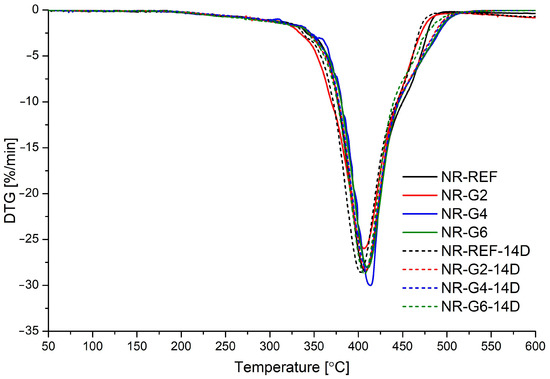 DTG curves for prepared natural rubber vulcanizates.