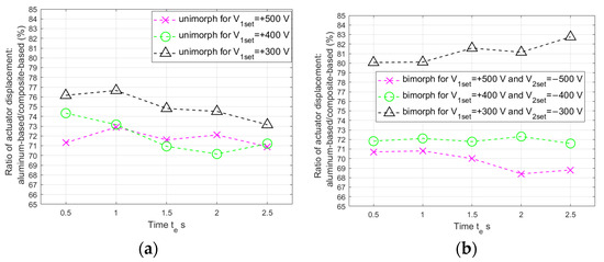- LaCroix, B.W.; Ifju, P.G. Investigating potential substrates to maximize out-of-plane deflection of piezoelectric macro-fiber composite actuators. J. Intell. Mater. Syst. Struct. 2015, 26, 781–795. [Google Scholar] [CrossRef]