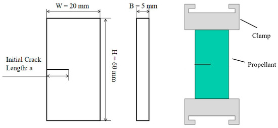 - Wang, T. Crack Propagation Velocity and Fracture Toughness of Hydroxyl-Terminated Polybutadiene Propellants: Experiments and Simulations. Eng. Fract. Mech. 2021, 257, 108034. [Google Scholar] [CrossRef]