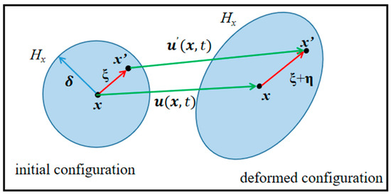 Initial and deformed configuration in PD.