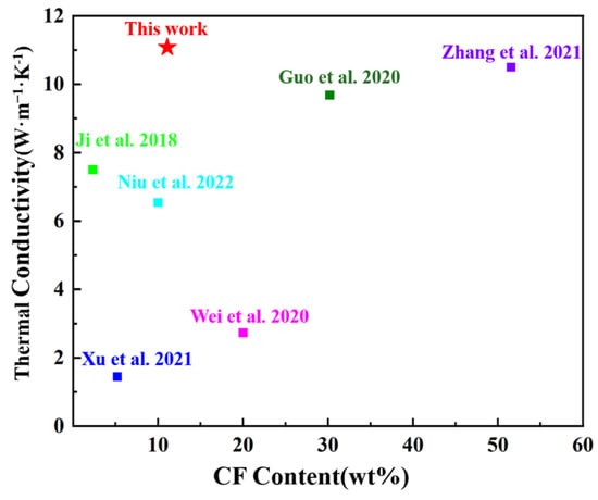 - Wei, J.M.; Liao, M.Z.; Ma, A.J.; Chen, Y.P.; Duan, Z.H.; Hou, X.; Li, M.H.; Jiang, N.; Yu, J.H. Enhanced thermal conductivity of polydimethylsiloxane composites with carbon fiber. Compos. Commun. 2020, 17, 141–146. [Google Scholar] [CrossRef]
