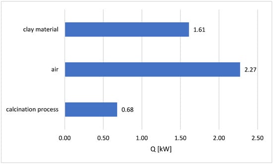 This was carried out assuming that the endothermic effect of calcination was 485 [kJ/kg], as illustrated in Figure 6. As a result of the calculations, it was determined that the total heat flow demand was 4.56 [kW] in the process.