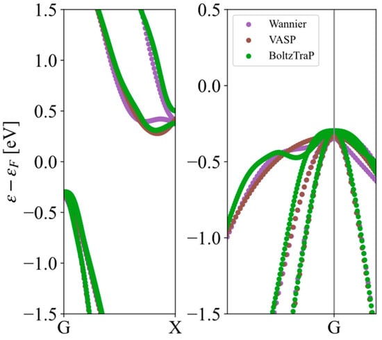 - Madsen, G.K.; Carrete, J.; Verstraete, M.J. BoltzTraP2, a program for interpolating band structures and calculating semi-classical transport coefficients. Comput. Phys. Commun. 2018, 231, 140–145. [Google Scholar] [CrossRef]
