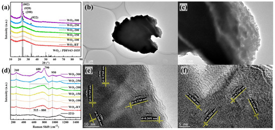 | Samples | WO3−RT | WO3−100 | WO3−150 | WO3−200 | WO3−250 | WO3−300 |