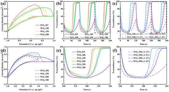 - Au, B.W.-C.; Tamang, A.; Knipp, D.; Chan, K.-Y. Post-annealing effect on the electrochromic properties of WO3 films. Opt. Mater. 2020, 108, 110426. [Google Scholar]