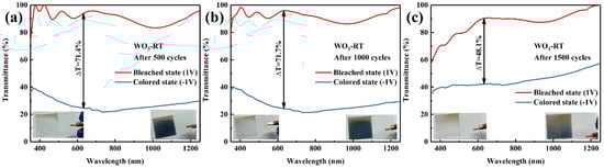 - Zhang, Y.; Liang, X.; Jiang, T.; Liu, H.; Fu, Y.; Zhang, D.; Geng, Z. Amorphous/crystalline WO3 dual phase laminated films: Fabrication, characterization and evaluation of their electrochromic performance for smart window applications. Sol. Energy Mater. Sol. Cells 2022, 244, 111820. [Google Scholar] [CrossRef]