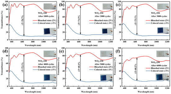 - Zhao, Y.; Zhang, X.; Li, W.; Li, Z.; Zhang, H.; Chen, M.; Sun, W.; Xiao, Y.; Zhao, J.; Li, Y. High-performance electrochromic WO3 film driven by controllable crystalline structure and its all-solid-state device. Sol. Energy Mater. Sol. Cells 2022, 237, 111564. [Google Scholar] [CrossRef]