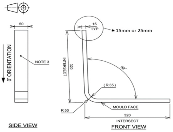 This research work utilised ‘L’-shaped components (Figure 2) manufactured from two SPRINTTM materials, GLP 43 and GLP 96, at 15 mm and 25 mm thicknesses (Table 1 and Table 2). Both prepregs contained plies with quadriaxial stitching (0°, 90°, ±45°), enabling quasi-isotropic laminates to be produced without alternating individual orientations.