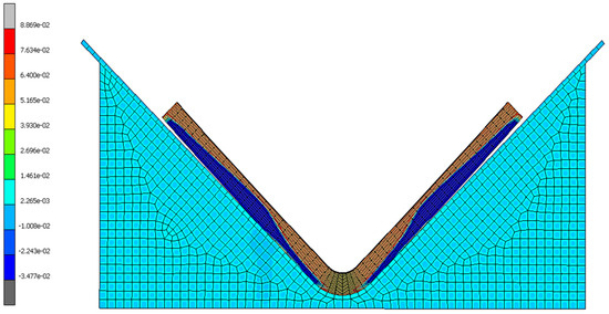 Simulation three results of volumetric cure shrinkage at the final step time for 8010-2K.