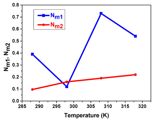 For sites type 1 and type 2, Nm1 and Nm2 reveal the site number actually needed to absorb the number of atoms at saturation. Figure 6 depicts the temperature dependence of Nm1 and Nm2.