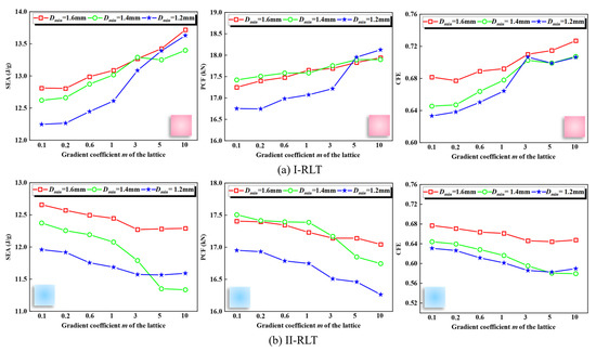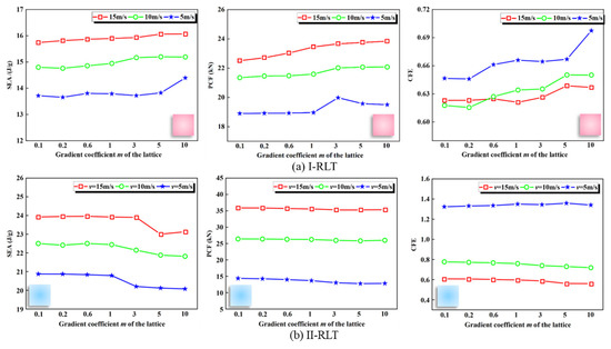 - A comprehensive evaluation of the crashworthiness of the structures using the composite proportionality evaluation method showed that the crashworthiness of the gradient lattice-filled tubes improved as the gradient index approached 10. Of the design parameters studied, the structures with t = 0.9 mm and m = 10 mm had excellent crashworthiness.