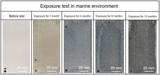 Figure 4. Macroscopic images of AZ91 magnesium alloy specimens exposed for different periods during an ocean-going voyage.