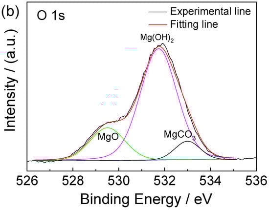 Figure 9. The XPS binding energy spectrum of corrosion products formed on AZ91 magnesium alloy exposed for 12 months in the marine environment of an ocean voyage: (a) whole spectrum, (b) narrow scan spectrum of O 1s. Different colors were used to distinguish different binding states of oxygen element.