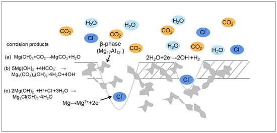 Figure 11. The corrosion process schematic of AZ91 magnesium alloy.