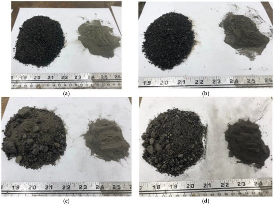 Coal bottom ash (CBA) and coal boiler slag (CBS) are byproducts of coal-fired power plants. The properties of these byproducts depend on the furnace type used by the power plant []. The oven-dried CBA or CBS are mechanically ground to obtain ground coal bottom ash (GCBA) or ground coal boiler slag (GCBS); the physical properties vary by fineness. GCBA has good pozzolanic properties, which increase as the fineness increases [,,]. The researchers have revealed that locally sourced untreated CBA demonstrates promising potential in mitigating ASR expansion within concrete structures []. Also, unburnt CBA bricks have a potential alternative to conventional burnt clay bricks [].