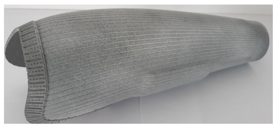 The model of the soft inner socket of the forearm prosthesis was used as an input for creating a model for 3D printing. This model was created in a specialized prosthetics workplace, and shape adjustments (for example, anatomical reductions for better attachment [31,32]) were made to it. In the following Figure 4, the shape of the forearm socket itself is obvious (the socket is ready for scanning).