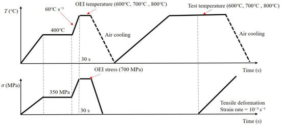 Schematic diagram of high-temperature tensile test conditions after an OEI treatment.
