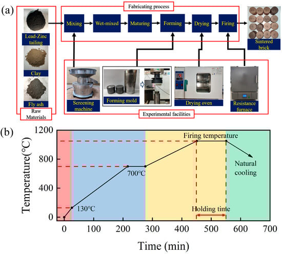 Fabrication of sintered ordinary brick from lead–zinc tailings: (a) fabrication process, (b) sintering scheme.
